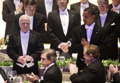 McCain, Obama trade jokes, not jabs at NYC dinner