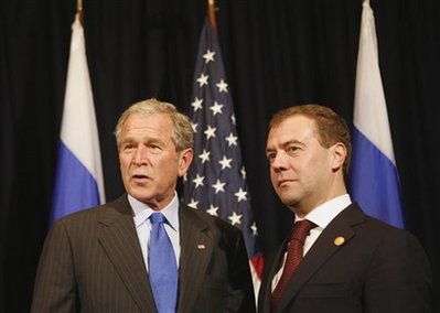 He was expected to tout the benefits of free trade during a meeting Sunday with his host, Peru's President Alan Garcia, before attending the final sessions of the 21-nation Asia-Pacific Economic Cooperation forum as he wrapped up three days of discussions. The United States and Peru have a free trade deal about to go into effect between the two nations -- one of a string of deals negotiated during Bush's presidency. On Saturday,the APEC leaders issued a statement endorsing a sweeping action plan that had been approved a week ago at an emergency meeting in Washington of the Group of 20, consisting of the world's richest countries and major emerging economies such as China, Brazil and India. The APEC members signed on as well, endorsing the effort to overhaul global regulations to prevent future crises and pledging to refrain from raising trade barriers in the face of the current downturn. Bush had pushed for this commitment, concerned that the severe turmoil could prompt nations to turn inward to protectionism, repeating the kinds of beggar-thy-neighbor trade policies that had turned the 1930s crisis into the Great Depression. "Recovering from the financial crisis is going to take time. But we'll recover, and in so doing, begin a new era of prosperity," Bush proclaimed Saturday in a speech to APEC business leaders. Bush managed to get in a final round of meetings with individual leaders, allowing himself a rare bit of self-reflection, commenting on several occasions that the talks marked his last face-to-face meetings with them as president. Bush may not view that as a total loss. His meeting with Russian President Dmitry Medvedev had a strained quality. Both Bush and Medvedev mentioned without going into details the disagreements that sometimes separated the two countries. Russia is unhappy with the Bush administration's plan to install a missile defense system in Europe while the administration has spoken disapprovingly of Russia's war with Georgia. "We've had our agreements, we've had our disagreements," Bush said, adding that he had sought to make sure that "when we disagree, we're able to do so in a way that is respectful to our two nations." For his part, Medvedev, speaking through a translator, said the two nations did have "points of real differences" but that he was prepared to keep working with the United States, possibly looking ahead to a change of administrations in January. White House press secretary Dana Perino called the talks an "honest and direct exchange" and said the two leaders had discussed the situation in Georgia. Russian forces drove deep into Georgia in August after that country launched an attack to regain control of South Ossetia. Bush did win a victory on an issue where Russia along with China, Japan and South Korea are working to support America's efforts to rid North Korea of its nuclear weapons program. The nations agreed to meet in China in early December, possibly to finally lock in a disarmament deal. Bush also came away from the weekend discussions with the backing he wanted from the APEC members for the G-20 action plan to deal with the global financial crisis, an agreement that calls for another G-20 summit before the end of April, after Bush has left office. Barring a surprise trip to Iraq or Afghanistan, Bush's foreign travel as president is ending with this trip. He turns over the White House to President-elect Barack Obama on Jan. 20. While Obama dispatched representatives to meet with G-20 leaders for the discussions a week ago in Washington, he had no representatives in Peru. Many of the other leaders were clearly wondering how US policy might change with Obama in the White House. The APEC leaders pledged to work toward a broad framework by the end of next month in global trade talks known as the Doha Round, which are being conducted by the Geneva-based World Trade Organization. However, it was unclear whether that commitment will bear fruit in the long-stalled talks, especially since countries may want to hold back their best offers until an Obama administration is in office. |