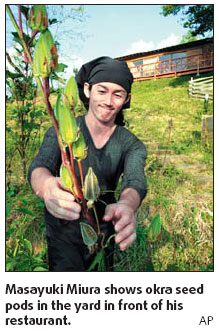 Masayuki Miura's restaurant is radically out of step with modern Japanese tastes. No Australian beef hamburgers, no mountains of fried Brazilian chicken, no imported steaks. Not a Chinese cabbage in sight. Instead, Miura and his wife, Yoko, serve up a 100 percent made-in-Japan offering of fish and locally grown organic rice and vegetables. "We need more people to eat Japanese vegetables," declared Miura, whose restaurant overlooks his almost 2-hectare farm in western Japan. "Of course, it's a food culture issue. Hamburgers don't have Japanese vegetables in them." No, they don't - and many in Japan consider that a major problem. The Japanese on average get only 40 percent of their calories from domestic food, down from 73 percent in 1965, the government says. The US, an agricultural exporter, has a 128 percent rate. Amid rising world food prices and a series of imported food contamination scandals, Japan is afraid it is too reliant on foreign food. The government released a report last year showing what Japanese would have to eat without imports. The typical lunch: One potato, two sweet potatoes and a quarter of an apple. "We have to wonder whether Japan should continue buying up food from around the world," said Hidenobu Ogawa, a food safety official with the Agriculture Ministry. "Japan has economic power now. But if we lose strength in the future, can we get enough food to survive?" The government has set a target of boosting the self-sufficiency rate up to 45 percent by 2015, and has launched a series of campaigns - from open markets featuring Japanese foods to commercials urging people to eat more rice. Miura's farm illustrates the kind of agricultural revolution needed to significantly boost self-sufficiency. Miura and his wife Yoko started their project a decade ago by going from farm to farm collecting samples and seeds of heirloom vegetables. The research turned up mild purple chili peppers, red okra, and a plethora of tubers, such as the carrot-shaped "yamato" potato, and the "busho" potato. The Miuras now grow some 200 varieties of vegetables and fruits. They produce natural fertilizer by composting leftovers from the restaurant and collecting waste from their three goats. While the Miuras think their experiment is unique in Japan, it dovetails with many other local produce and organic farming projects that have cropped up around Japan in recent years. "I think we're entering a phase when the Japanese are trying to preserve their own types of food," Miura said. "You can't separate the issues of food self-sufficiency and food culture." |