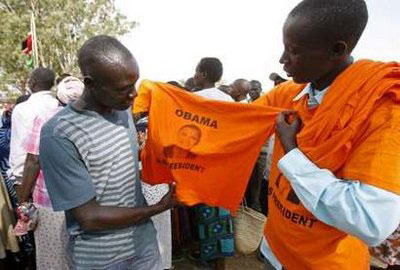 A vendor sells T-shirts featuring prints of US President-elect Barack Obama at the Barack Obama Nyang'oma Kogelo Primary School, 430km (267 miles) west of Kenya's capital Nairobi, January 19, 2009, during cultural celebrations in honour of Obama. [Agencies]