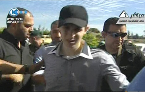 ![]() Gilad Shalit (C) is seen in this video grab from Israel's Channel 10 accessed from Egypt TV October 18, 2011.[Photo/Agencies]? |