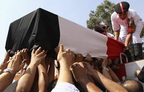 Interior Minister Mohamed Ibrahim said 43 police were among the dead. Security forces had completely cleared two protest camps in the capital and would not tolerate any further sit-ins, he said, vowing to restore Mubarak-era security.