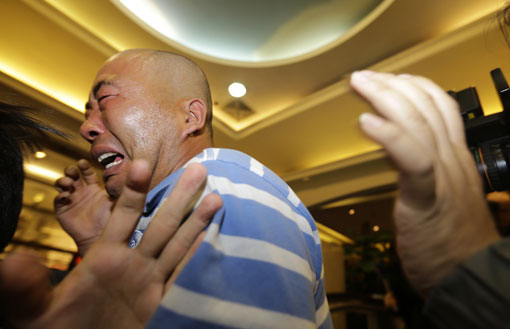 Relatives of Chinese passengers aboard a missing Malaysia Airlines flight reacted with hysteria on Monday after the Malaysian prime minister announced the jet ended its journey in the remote Southern Indian Ocean.