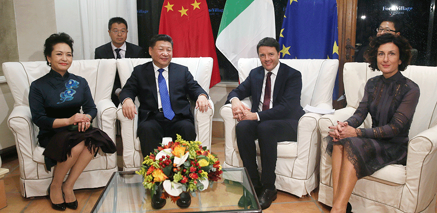 President Xi Jinping meets with Italian Prime Minister Matteo Renzi in Sardinia island, Italy on November 16, 2016. [Photo/Xinhua] |