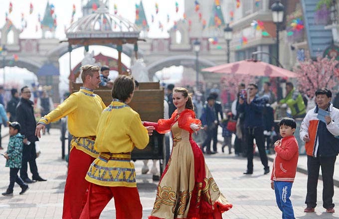Queen Elizabeth II meets school children during the official opening ceremony for the Queensferry Crossing, in Queensferry, west of Edinburgh, on Sept 4, 2017. [Photo/VCG]