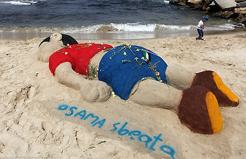 Artist creates sand sculpture depicting drowned Syrian boy